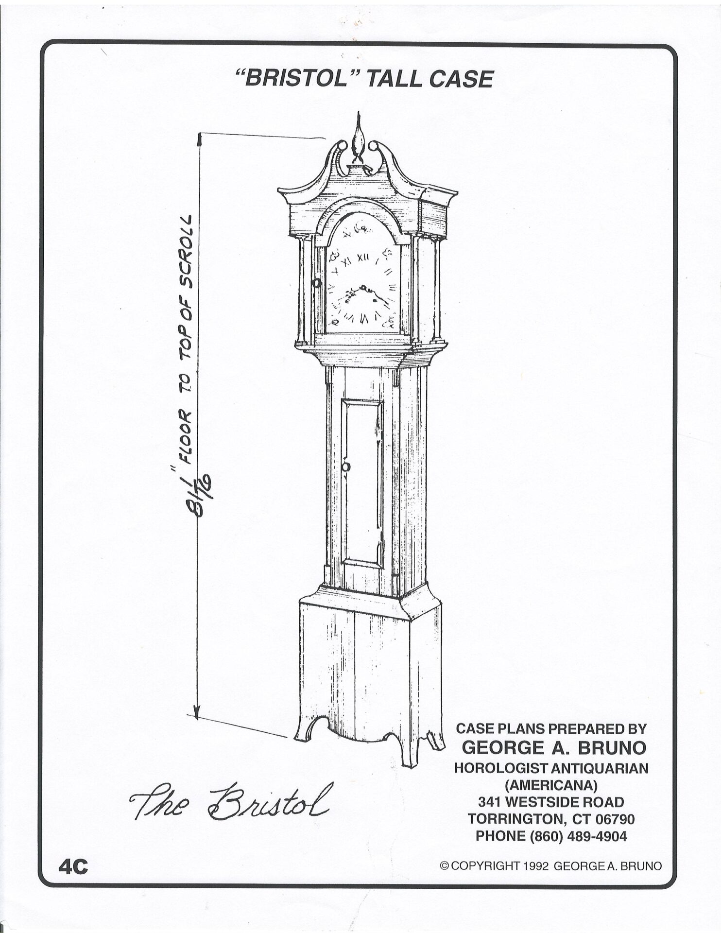 #155 The Bristol scroll top tall clock case plans (E) quantity