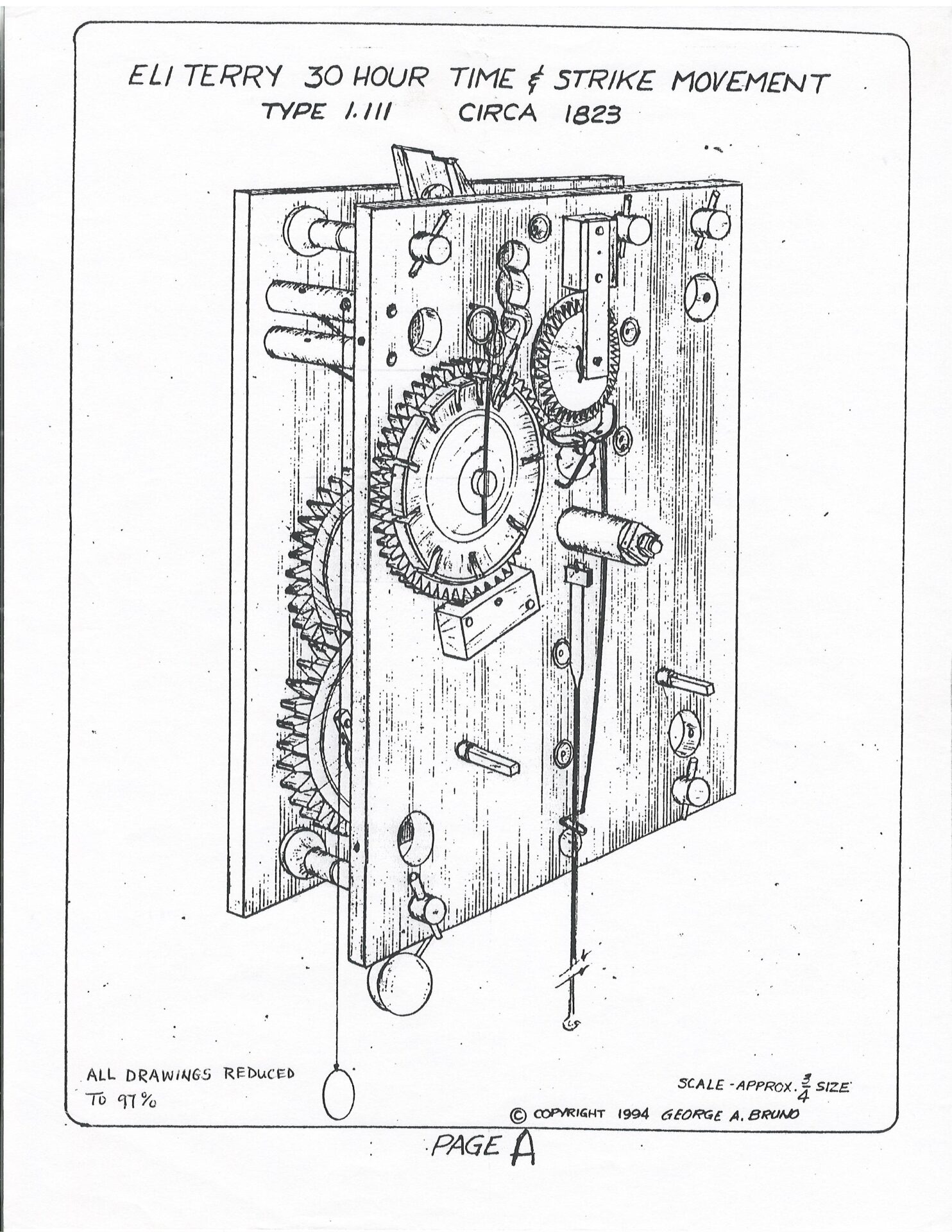 #161 E. Terry style 30-hour wood shelf clock movement #5 plans CP quantity