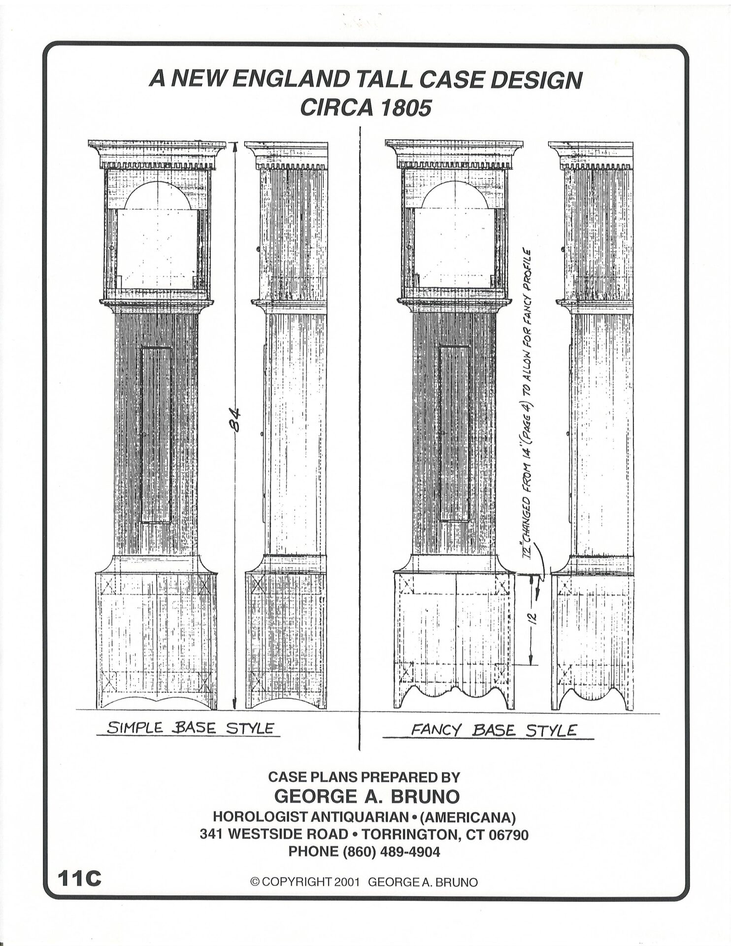 #154 The Litchfield fret top tall clock case plans (E)