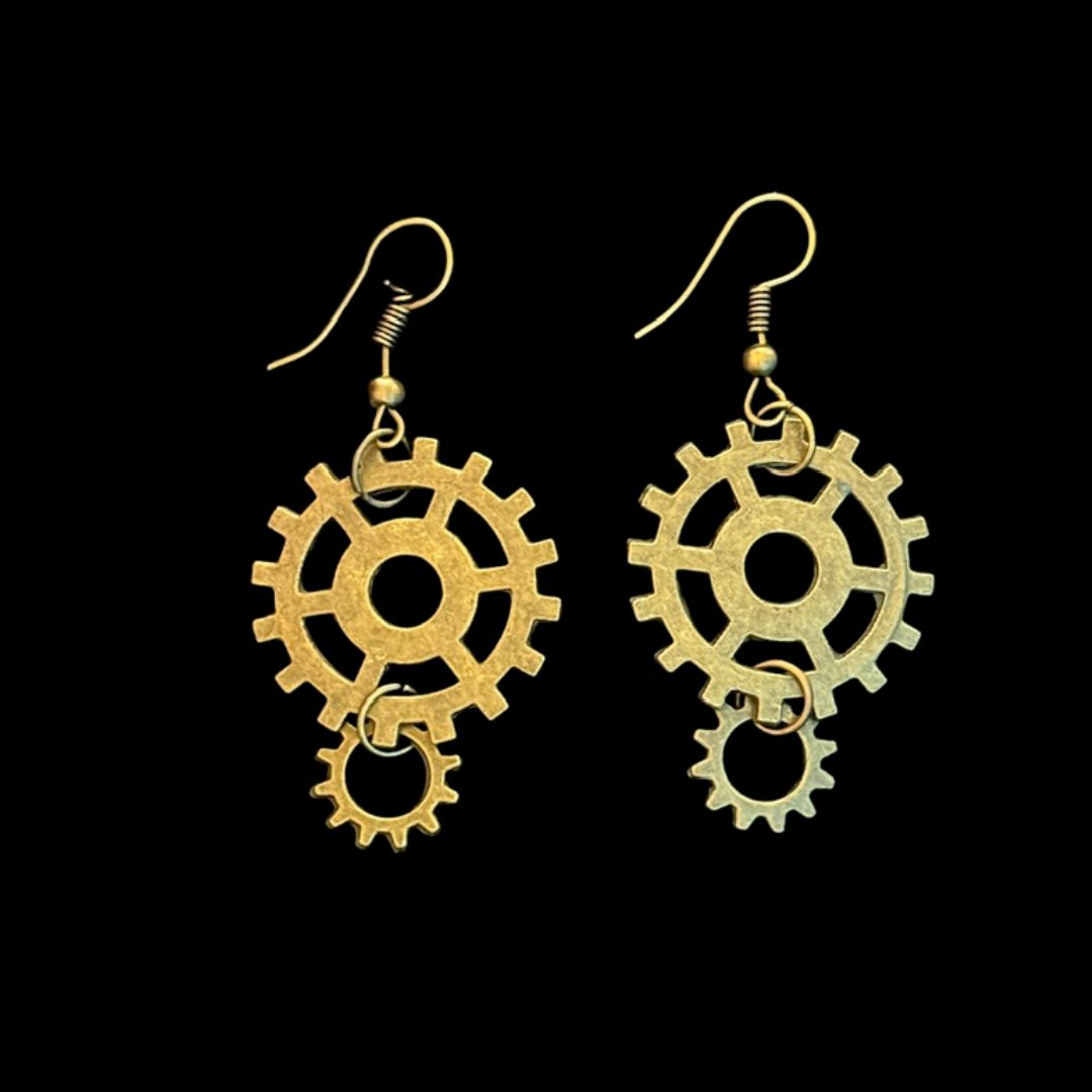3-Gear Bronze Earrings
