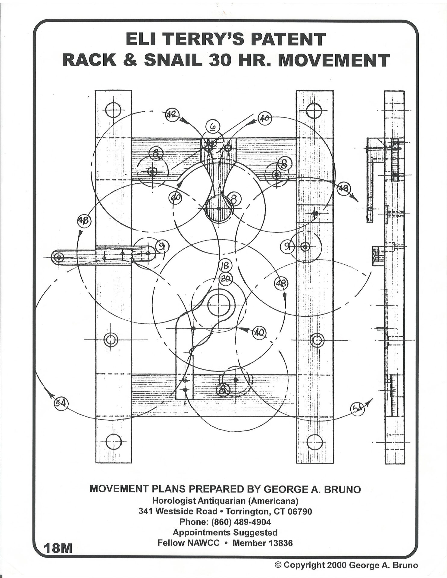 #161 E. Terry style 30-hour wood shelf clock movement #5 plans CP