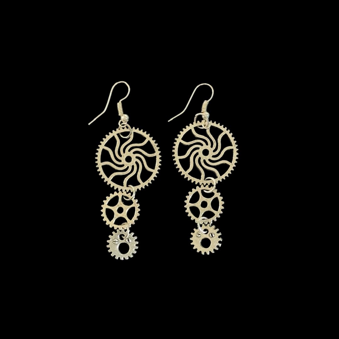 3-Gear Silver Earrings